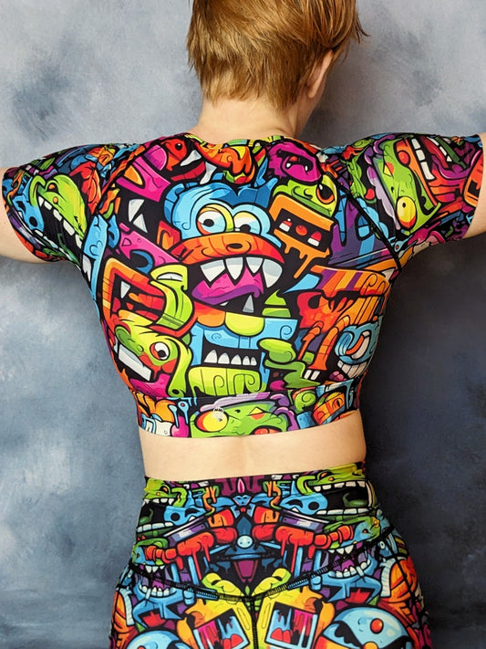 Rainbow Monsters Cropped Peek-A-Boo T-Top